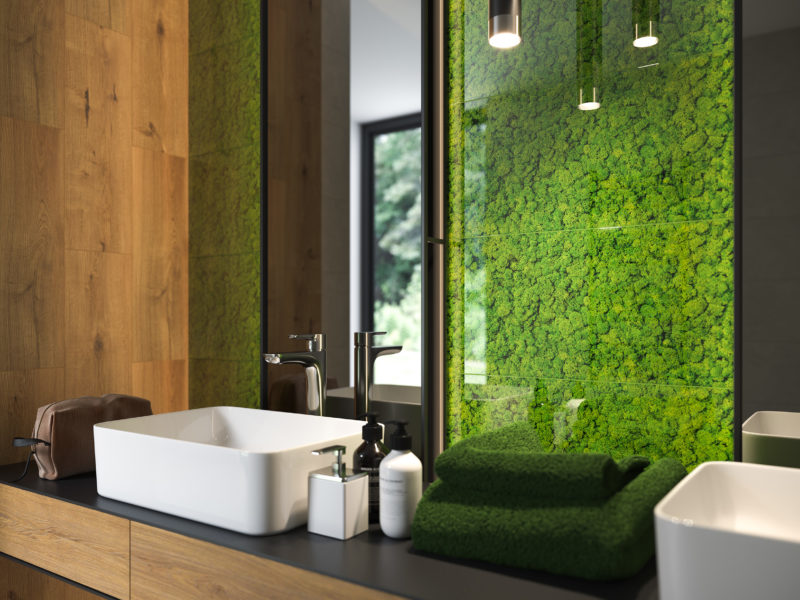 Kolekcja płytek łazienkowych Cersanit Fresh Moss to idealne połączenie surowego betonu z soczystą zielenią chrobotka reniferowego. Z pozoru dwa kontrastujące ze sobą elementy pomogą nam stworzyć nowoczesne wnętrze z niezwykłym naturalnym akcentem.