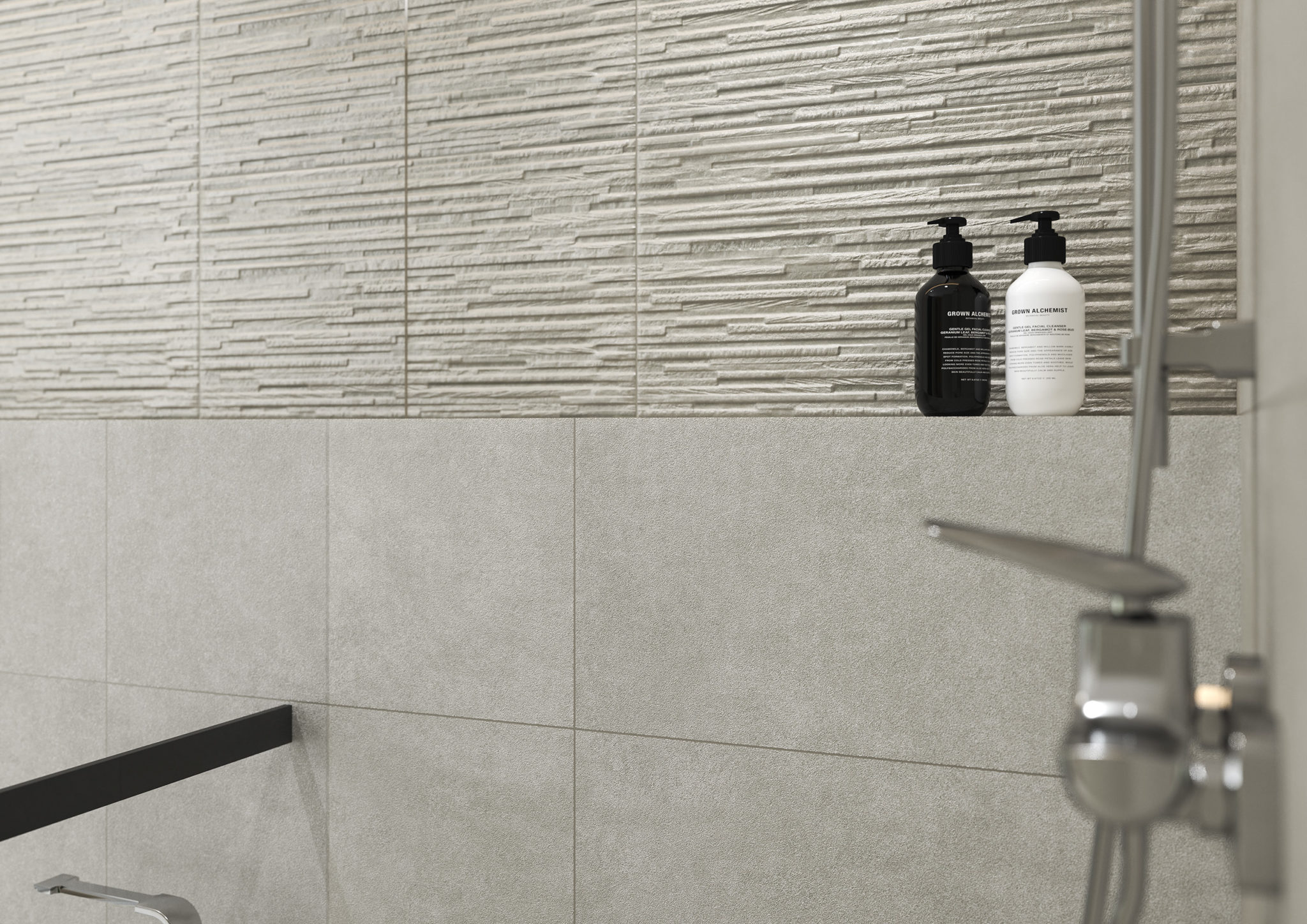 Motyw betonu, pozostaje wciąż aktualny i używany w różnych wariacjach pozwala na stworzenie niezwykle popularnego dziś industrialnego wnętrza, jest widoczny na podłogach, ścianach, przedmiotach codziennego użytku i dekoracjach. W kolekcji znajdziemy perfekcyjnie imitujące wygląd surowego betonu rektyfikowane płytki bazowe w rozmiarze 30x60 w dwóch wariantach - gładkim oraz pokrytym cieniowanymi elementami nadającymi strukturze głębi. Szarość betonu w kolekcji Fresh Moss doskonale będzie się komponować z ciepłym odcieniem drewna. By dodać wnętrzu niepowtarzalnego charakteru do aranżacji wykorzystajmy szklane dekoracje z nadrukiem mchu.