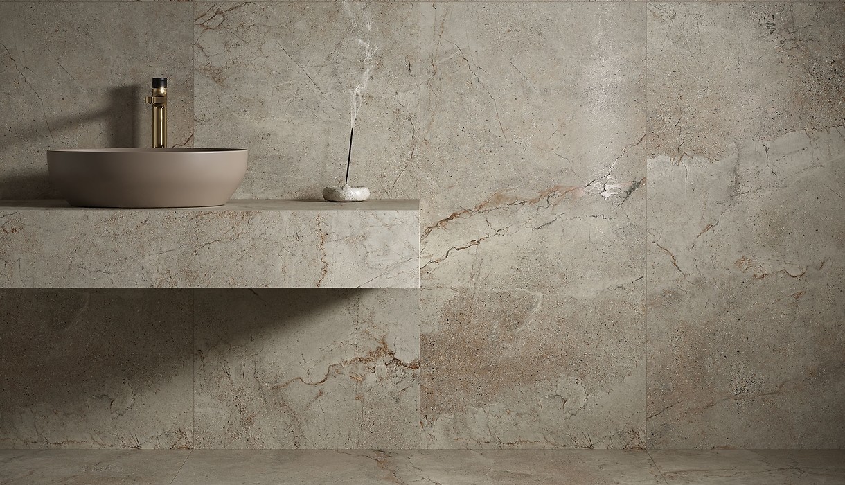 Kolekcja MOUNTAIN TRIP inspirowana jest surową naturą kamienia skalnego. Tło w ciepłym odcieniu szarości przenikają beżowo-brązowe akcenty oraz drobne ciemniejsze żyły. Grafika ujmuje wyrazistymi detalami i dopracowaną stylistyką. Naturalność kamienia uwydatnia matowe wykończenie, a także specjalne efekty zastosowane na powierzchni, które wyraźnie akcentują użylenia. Miejsca te efektownie połyskują pod wpływem światła, jednocześnie nadając im delikatną strukturę wyczuwalną pod dotykiem. Gra światła na powierzchni dodaje płytce wyrafinowanego charakteru. Kolekcja znakomicie wpisze się w aranżacje w stylu modern classic. Będzie też atrakcyjną bazą nowoczesnych wnętrz. Gresy będą dobrze komponować się z trendową czernią, ale także powracającymi brązami i głębokimi odcieniami egzotycznego drewna.