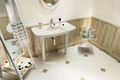 Płytki z kolekcji Royal Place to bardzo modne połączenie płytek białych i ze wzorem drewnopodobnym. Płytki ułożone na ścianach i podłodze tworzą wspaniały klasyczny klimat. Wszystkie rodzaje płytek są dostępne w kolorze białym lub drewnopodobnym, ciemniejszym brązie. Elementy kolekcji posiadają ogromny potencjał do wykorzystania w różnorodnych aranżacjach wnętrz. Płytki podłogowe 59,8x59,8 cm i mają ścięte rogi do który pasują kostki drewniane o wymiarach 9,8x9,8 cm. Płytki ścienne występują w wymiarach 74,8x29,8 cm i dostępne są zarówno gładkie, jak i w różnych wariantach wypukłych wzorów.