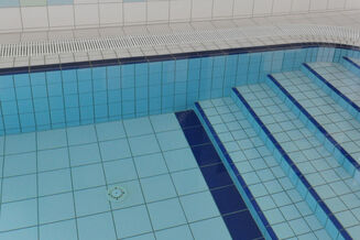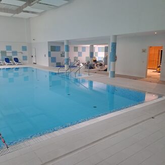 Kolor jasnoniebieski świetnie komponuje się z odcieniami wody, optycznie powiększa przestrzeń i nadaje lekkości basenowi.